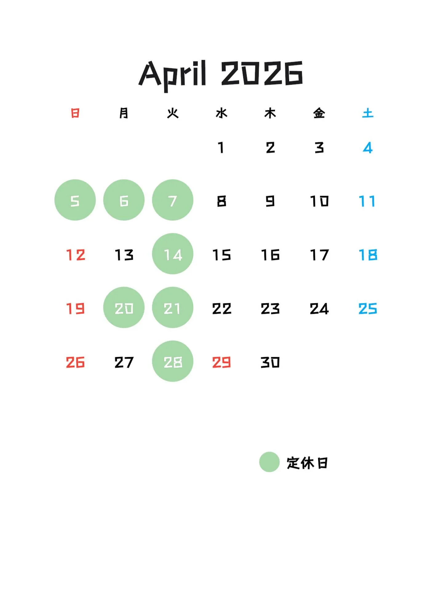 4月の定休日のご案内🚙💨 2026/04/01 4月の定休日のご案内🚙💨 3月は沢山のお客様のご利用ありがとうございます😊 只今お預かりしてますお客様の車両も順次整備させていただきますので 今しばらくお待ちください🙇 4月もどうぞよろしくお願いいたします🙏